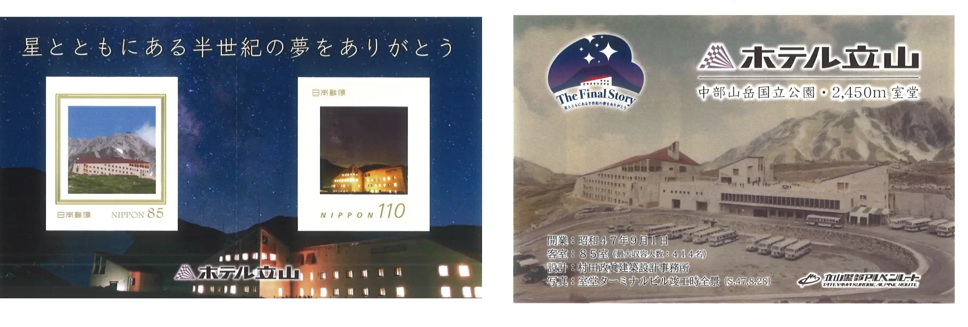 ホテル立山のラストイヤーを記念してミニフレーム切手を発行しました。